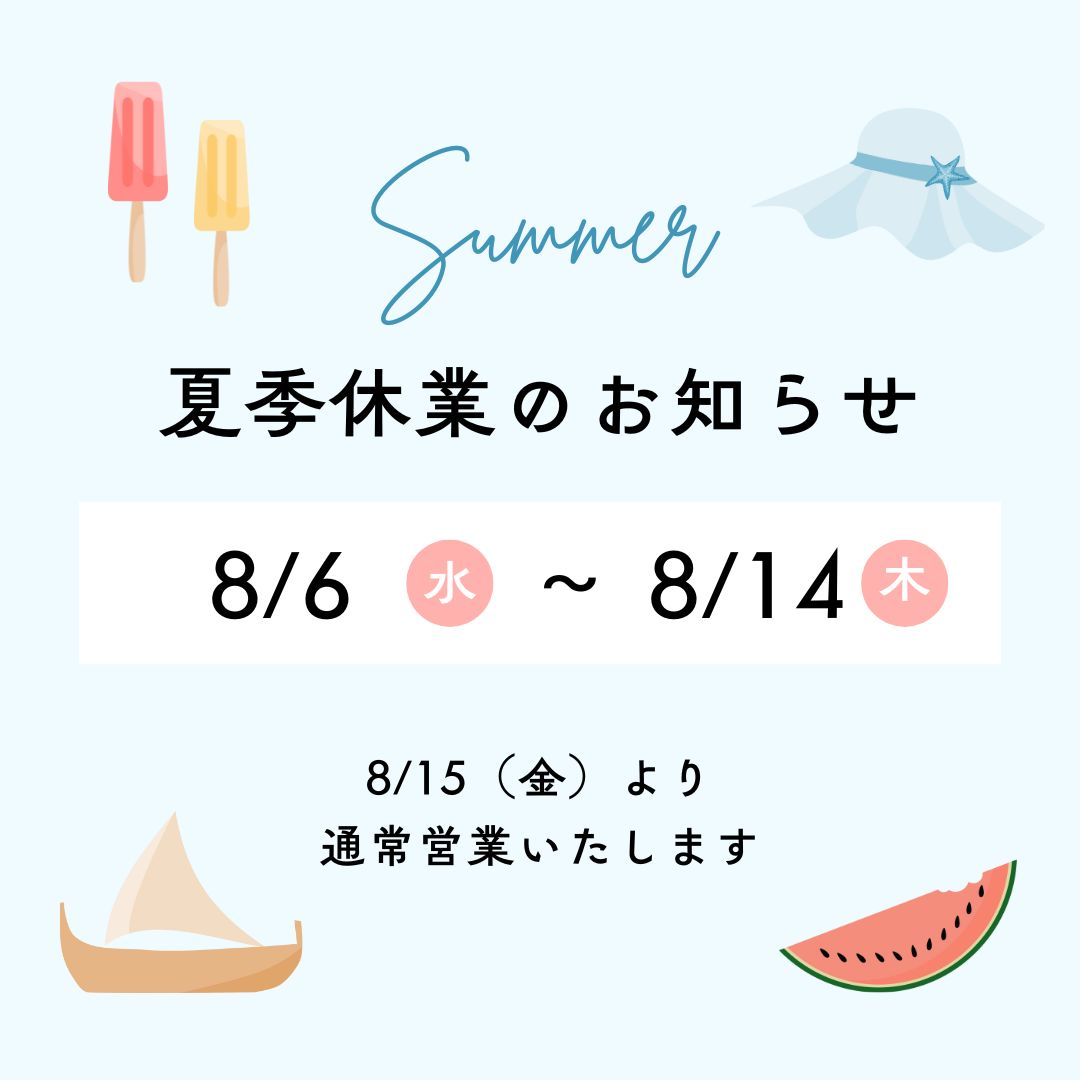 平素より格別のご高配を賜り、誠にありがとうございます。 誠に勝手ながら、弊社では下記の期間を夏季休業とさせていただきます。 【夏季休業期間】 2025年8月6日(水)~ 8月14日(木)...