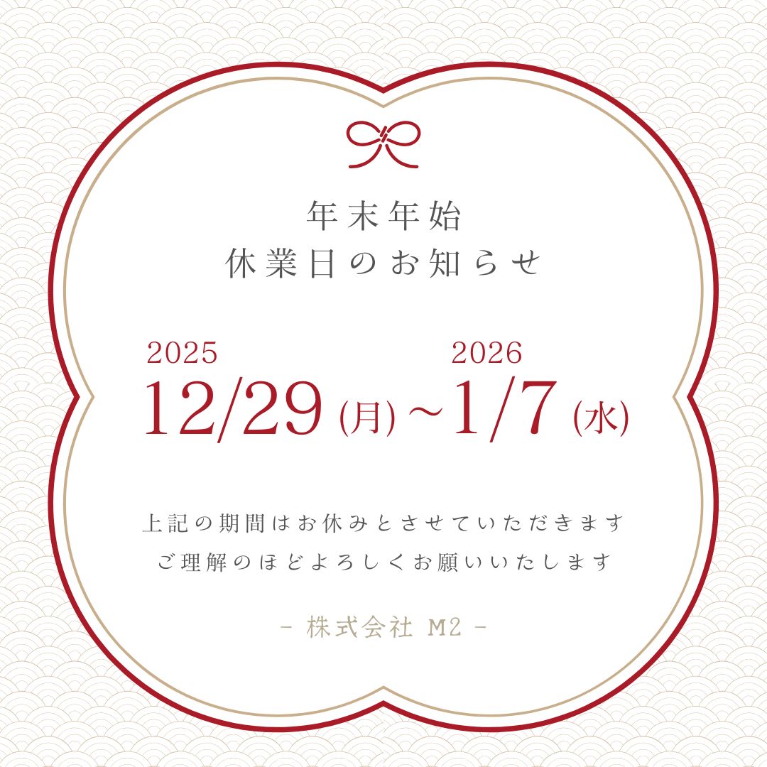 当社は、12月29日(月)〜1月7日(水)を年末年始休業期間とさせていただきます🎌✨