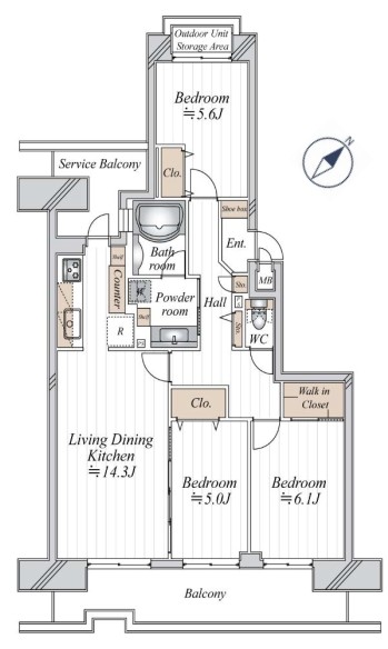*間取りは使い勝手の良い全室洋室の3LDKファミリータイプ!